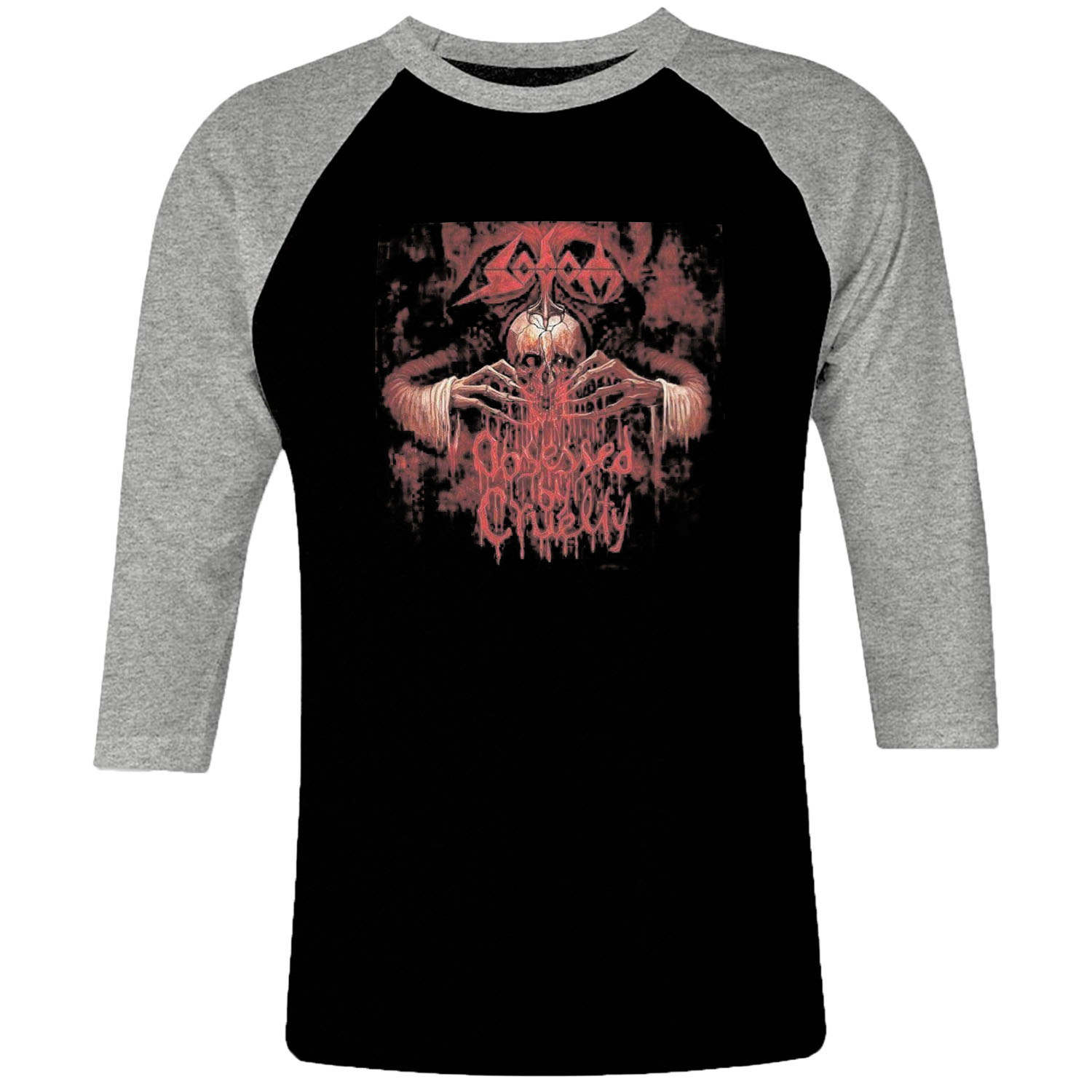 1cp I 140 Sodom Obsessed By Cruelty Raglan T Shirt 3 4 Sleeve Rock Band Metal Retro Punk Vintage Concert Cotton Design Handmade Logo New