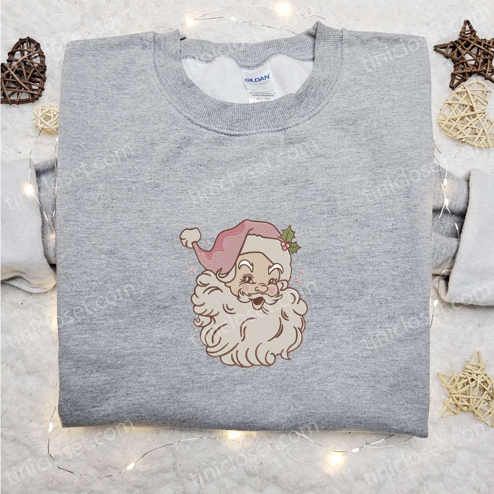 Pink Santa Claus Embroidered Shirt, Christmas Embroidered Hoodie, Best Gifts For Family