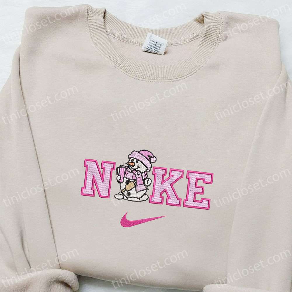 Pink Snowman X Nike Embroidered Shirt, Christmas Embroidered Hoodie, Best Gifts For Family