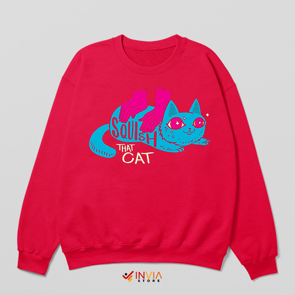 Playful Paws Squish That Cat Meme Red Sweatshirt