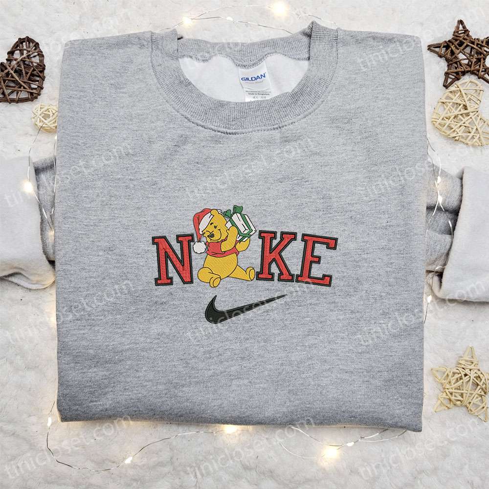 Pooh With Gift Christmas X Nike Embroidered Sweatshirt, Christmas Embroidered Shirt, Best Christmas Gift Ideas