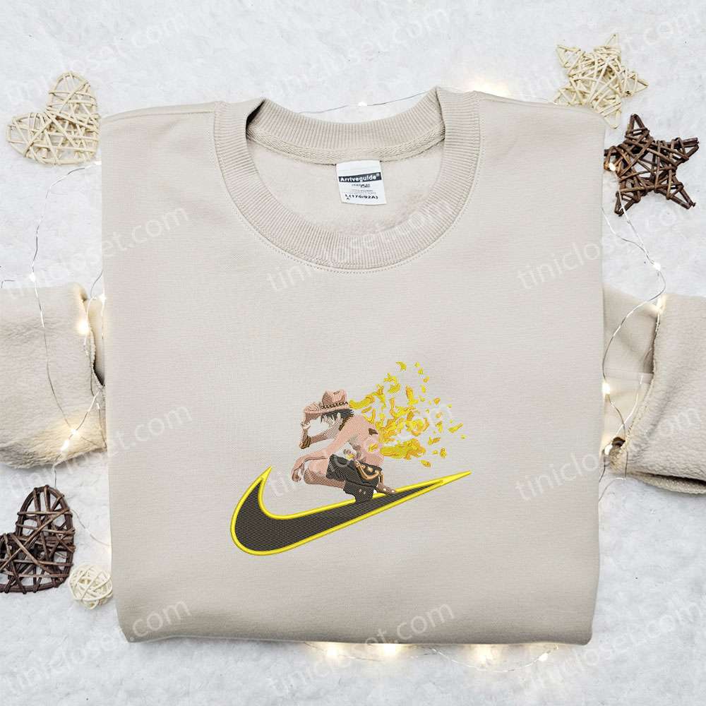 Portgas D Ace X Swoosh Embroidered Sweatshirt, One Piece Anime Embroidered Shirt, Best Gift Ideas For All Occasions