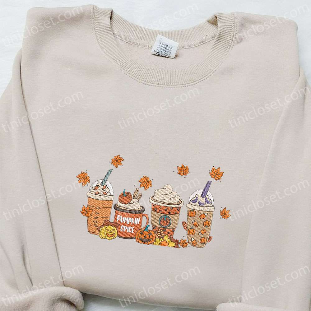Pumpkin Coffee Latte Embroidered Shirt, Halloween Embroidered T-shirt, Best Halloween Gift Ideas For Family