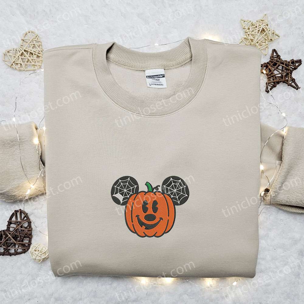 Pumpkin Mickey Mouse Embroidered Sweatshirt, Disney Characters Embroidered Hoodie, Best Halloween Gift Ideas