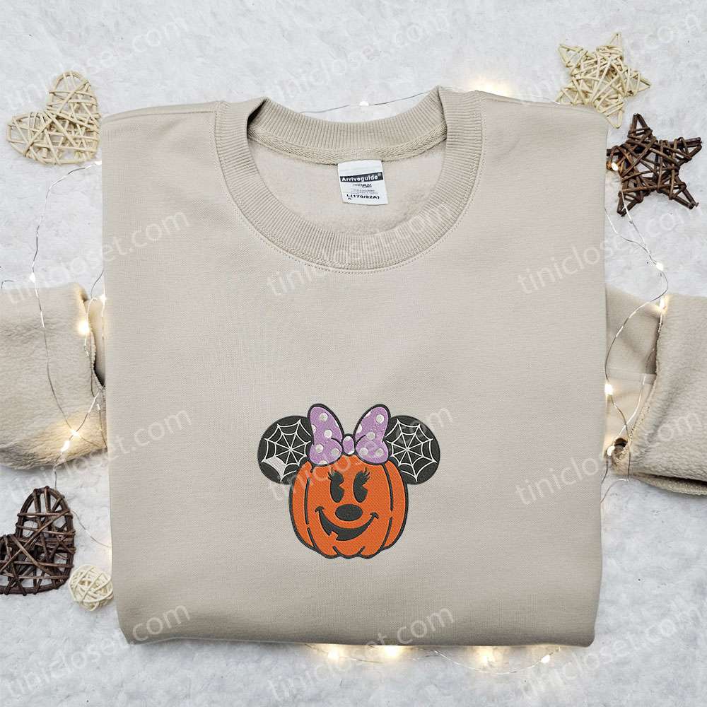 Pumpkin Minnie Mouse Embroidered Sweatshirt, Disney Characters Embroidered Hoodie, Best Halloween Gift Ideas