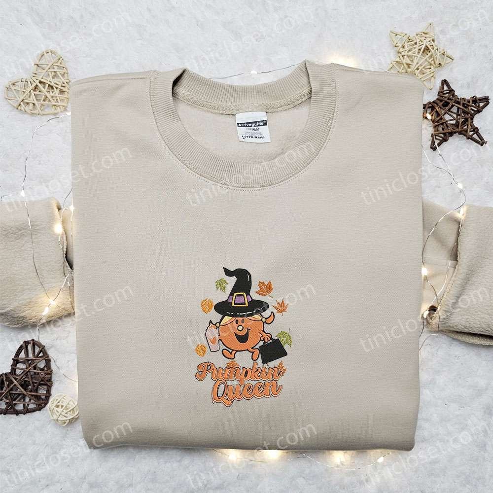 Pumpkin Queen Little Miss Embroidered Shirt, Cute Halloween Embroidered Sweatshirt, Best Halloween Gift Ideas