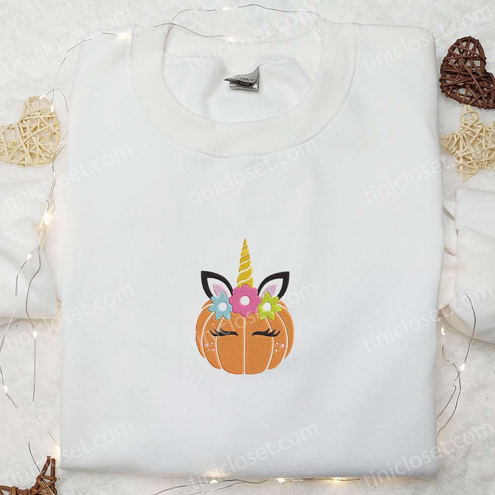 Pumpkin Unicorn Embroidered T-shirt, Halloween Embroidered Shirt, Best Halloween Gift Ideas