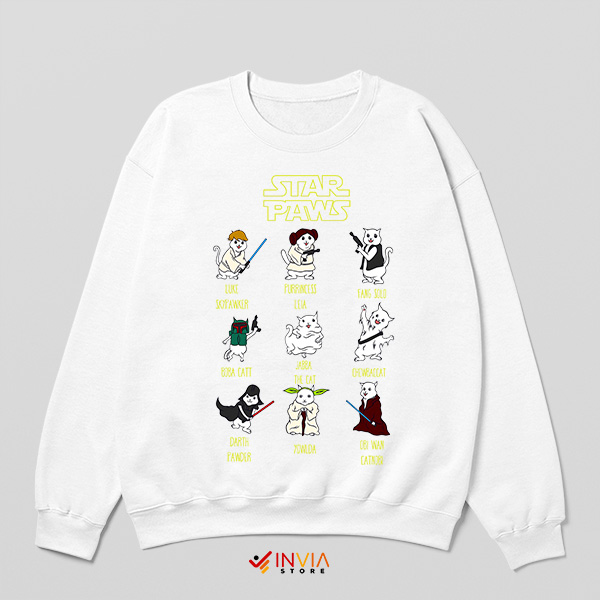 Purr Wars Star Paws Edition Cat White Sweatshirt