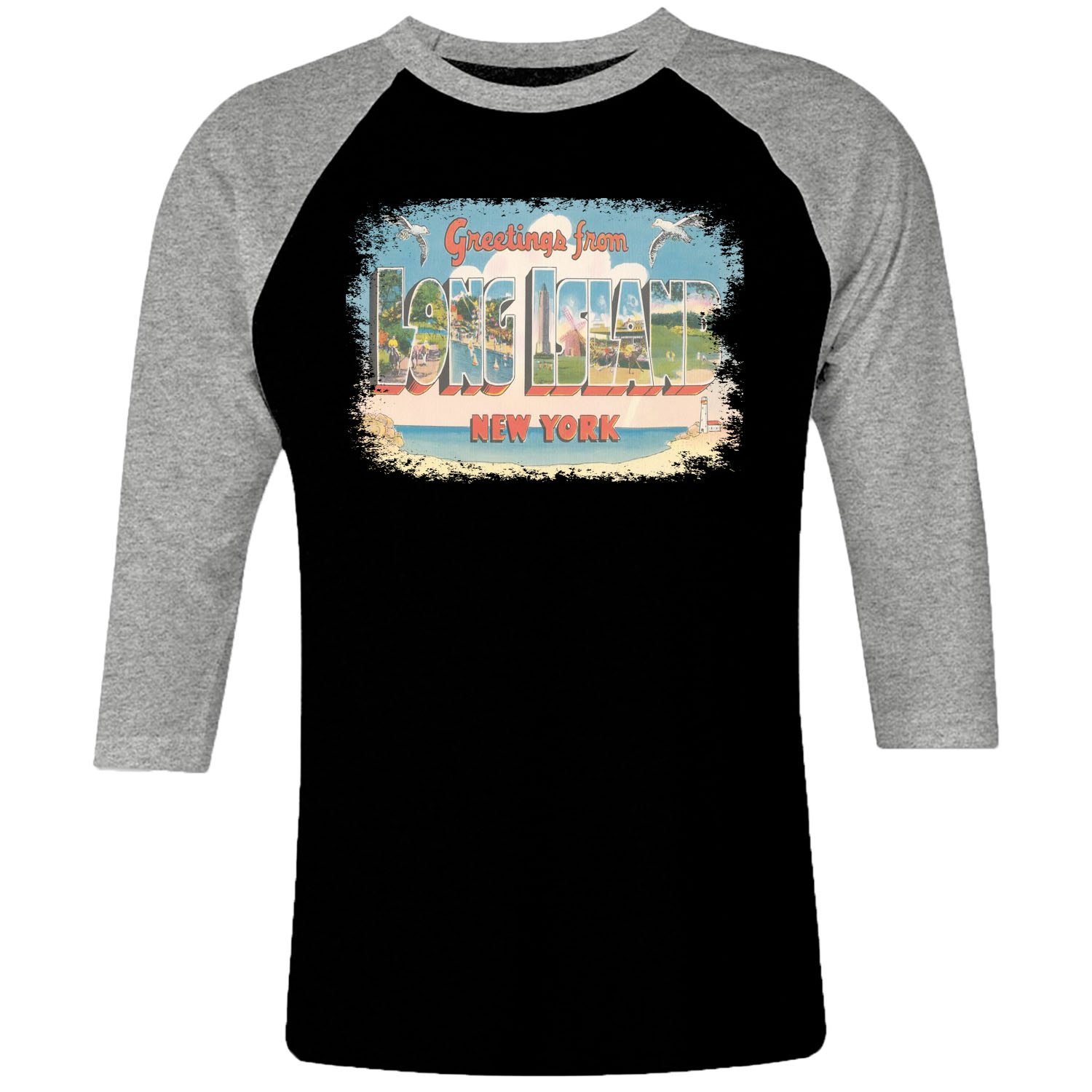 1cp I 194 Greetings From Long Island New York Raglan T Shirt 3 4 Sleeve Retro Vintage Tshirts Shirt T Shirts For Men Classic Cotton Design Handmade Logo New