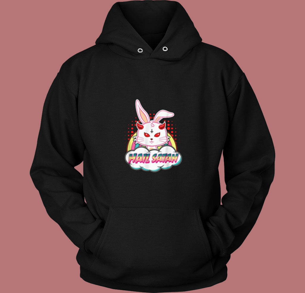 Rabbit Hail Satan Easter Demonic Baphomet Vintage Hoodie