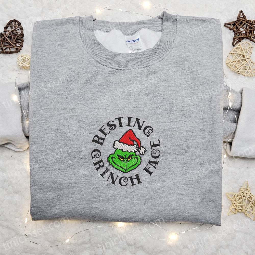 Resting Grinch Face Embroidered Shirt, Christmas Embroidered Hoodie, Best Gifts For Family