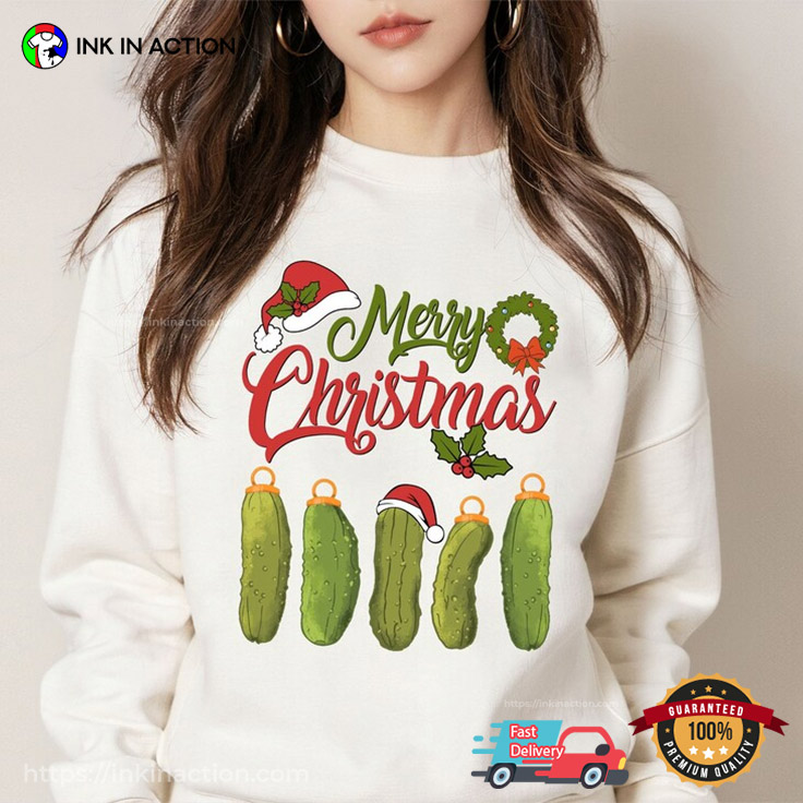 Retro Merry Christmas Pickles T-shirt, Funny Gifts For Pickle Lovers