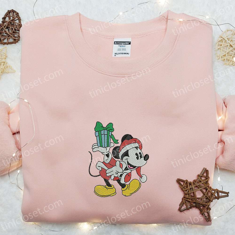 Retro Mickey Christmas Embroidered Sweatshirt, Disney Christmas Embroidered Shirt, Best Christmas Gift Ideas