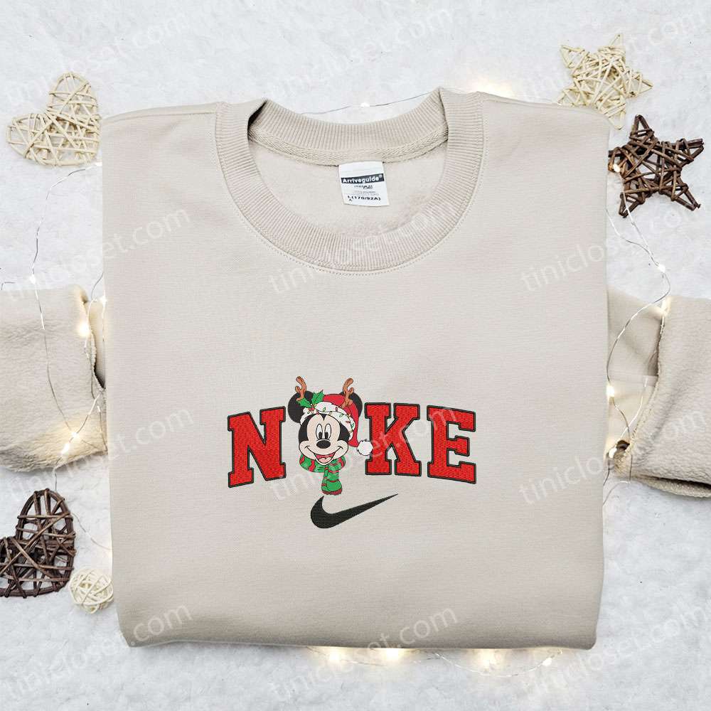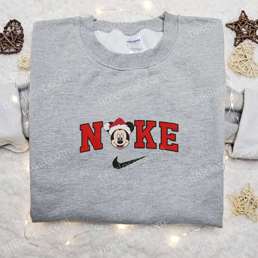 Retro Mickey Xmas Hat X Nike Christmas Embroidered Sweatshirt, Disney Characters Movie Merry Christmas Embroidered Shirt, Best Christmas Day Gift Ideas
