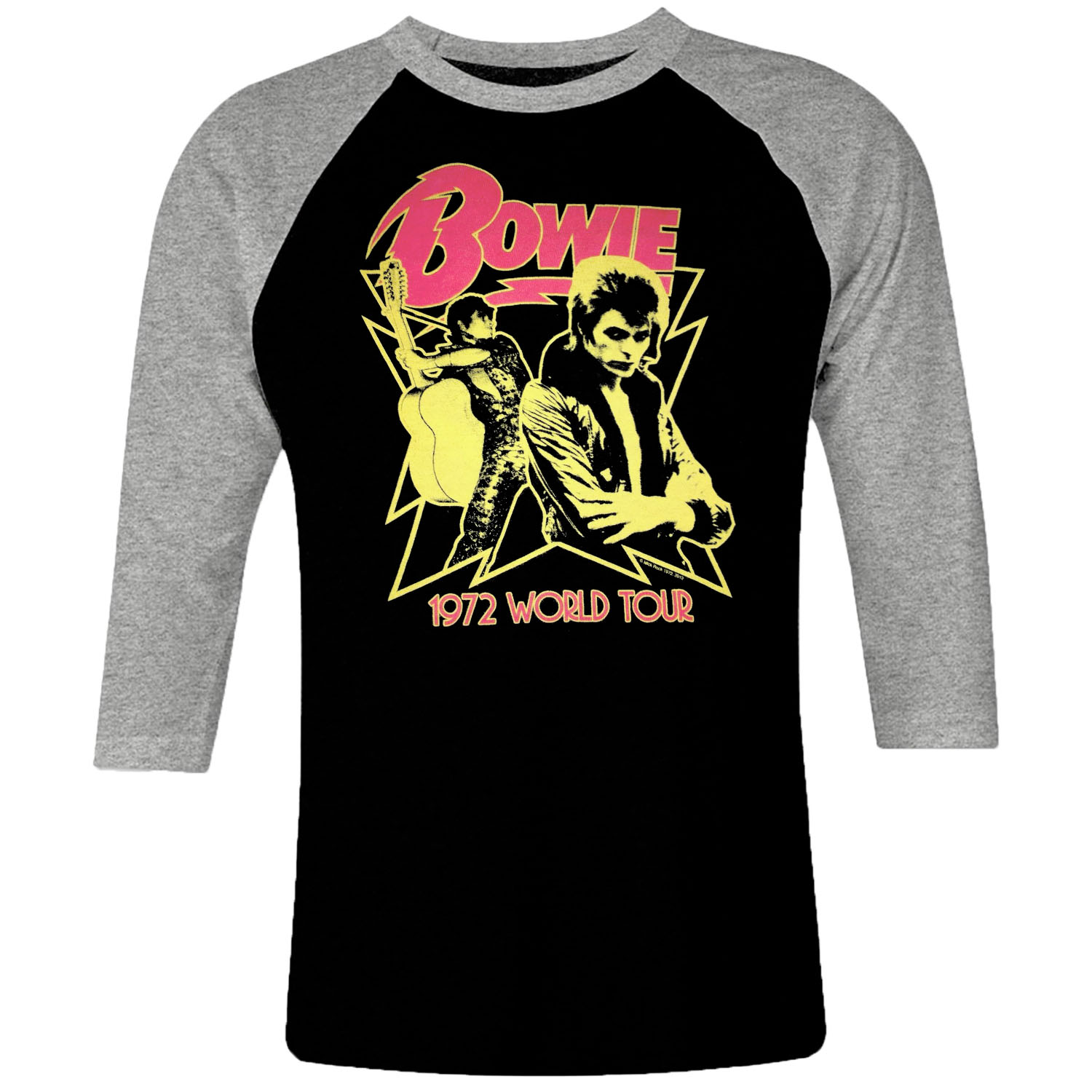 1cp I 279 Bowie 1972 World Tour Raglan T Shirt 3 4 Sleeve Rock Band Metal Retro Punk Vintage Concert Cotton Design Handmade Logo New