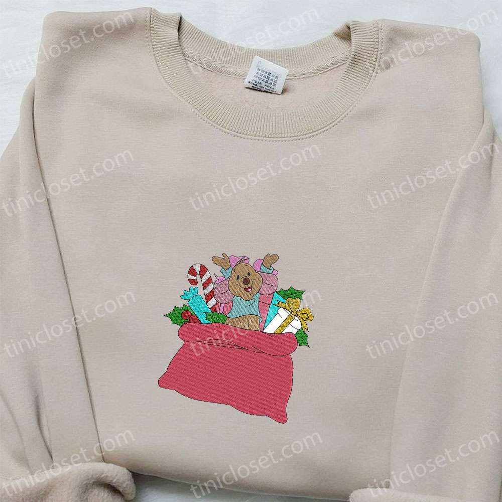 Roo In Christmas Gift Bag Embroidered Shirt, Disney Characters Embroidered Hoodie, Christmas Embroidered Sweatshirt