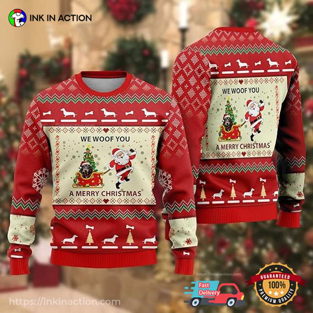 Santa Claus Reindeer We Woof You Ugly Christmas Sweaters