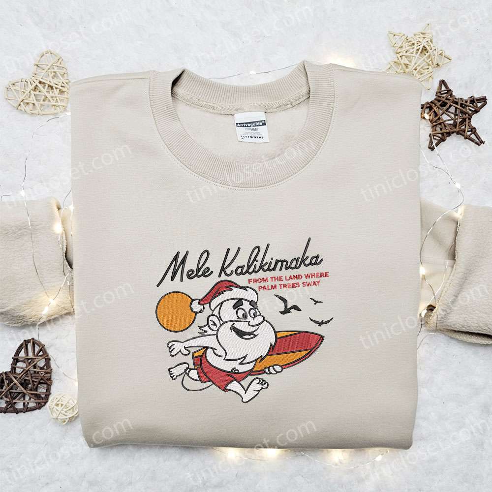Santa Mele Kalikimaka Christmas Embroidered Sweatshirt, Cute Christmas Embroidered Sweatshirt, Best Christmas Gift Ideas