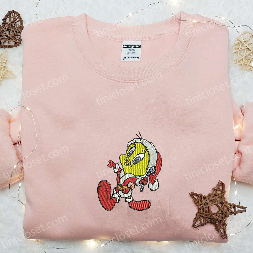 Santa Tweety Bird Embroidered Shirt, Disney Characters Embroidered Hoodie, Best Christmas Gifts For Family