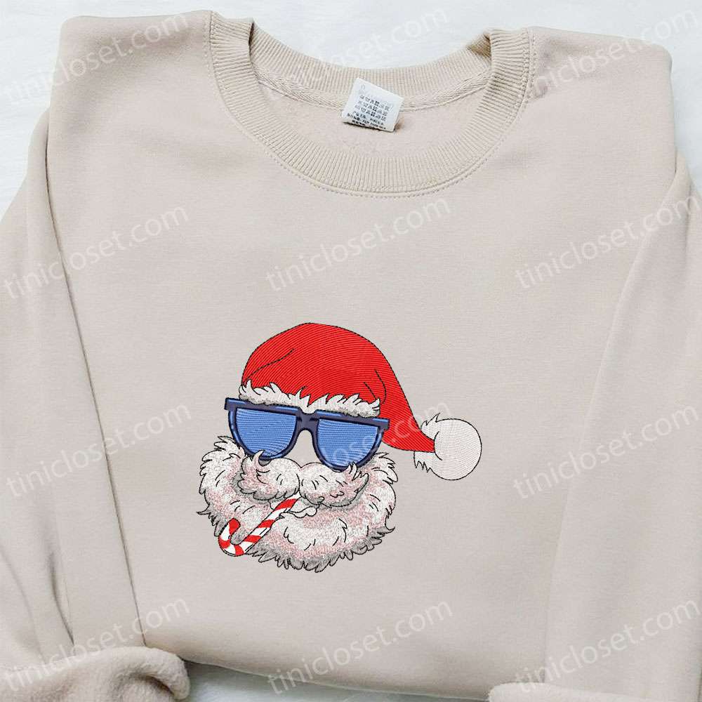 Santa Wearing Sunglasses Eating Candy Cane Embroidered Shirt, Retro Christmas Embroidered Hoodie, Best Gifts For Family