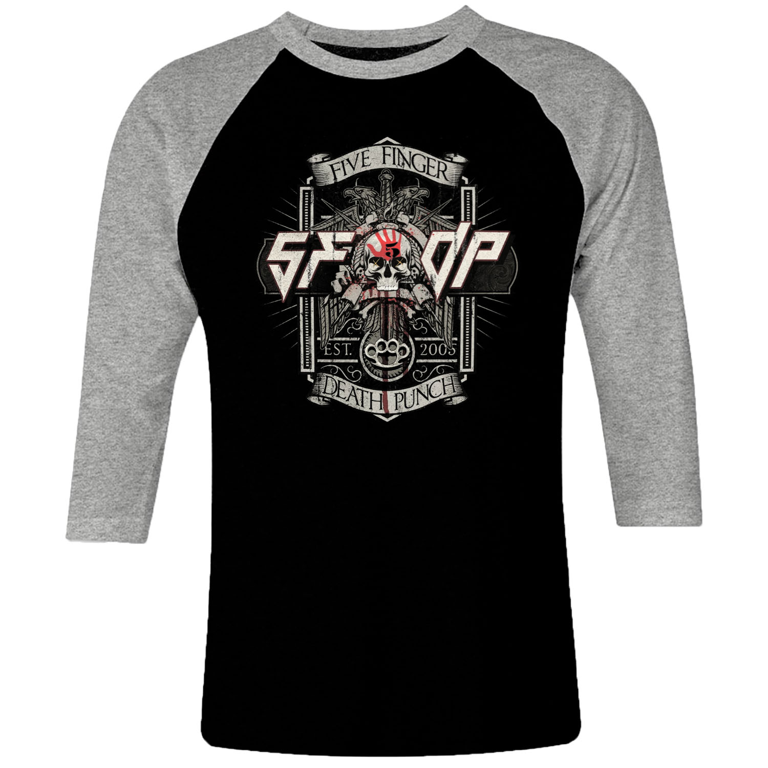 1cp I 347 The Five Finger Death Punch 5fdp Raglan T Shirt 3 4 Sleeve Rock Band Metal Retro Punk Vintage Concert Cotton Design Handmade Logo New
