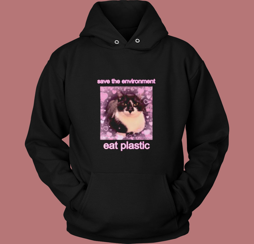 Save The Environment Eat Plastic Cute Cat Lover Vintage Hoodie