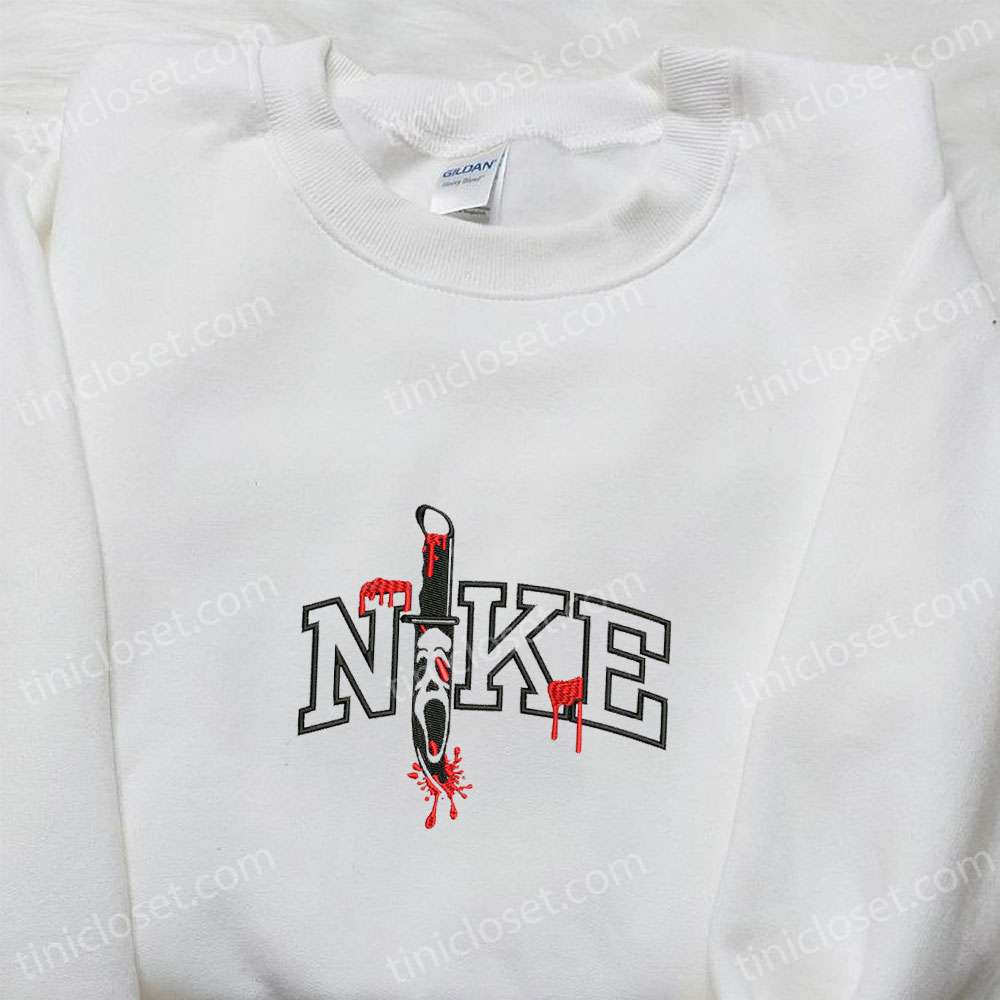 Scream Knife X Nike Embroidered Shirt, Horror Movie Embroidered Hoodie, Halloween Embroidered Sweatshirt