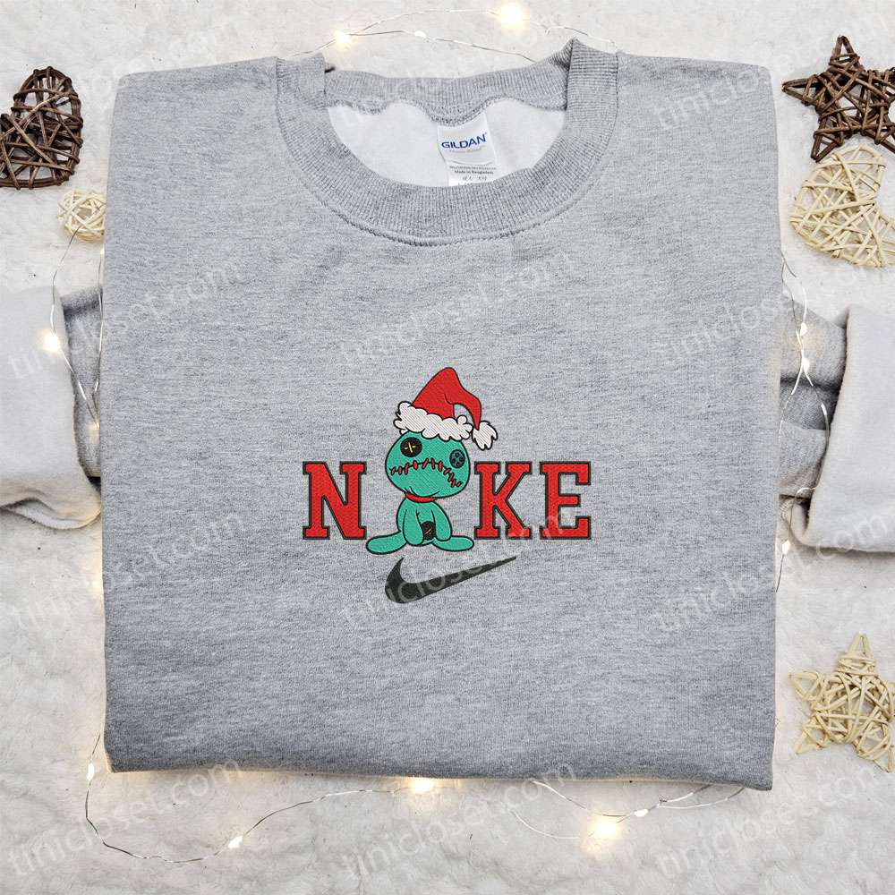 Scrump Christmas Hat X Nike Embroidered Sweatshirt, Cartoon Christmas Embroidered Shirt, Best Christmas Gift Ideas