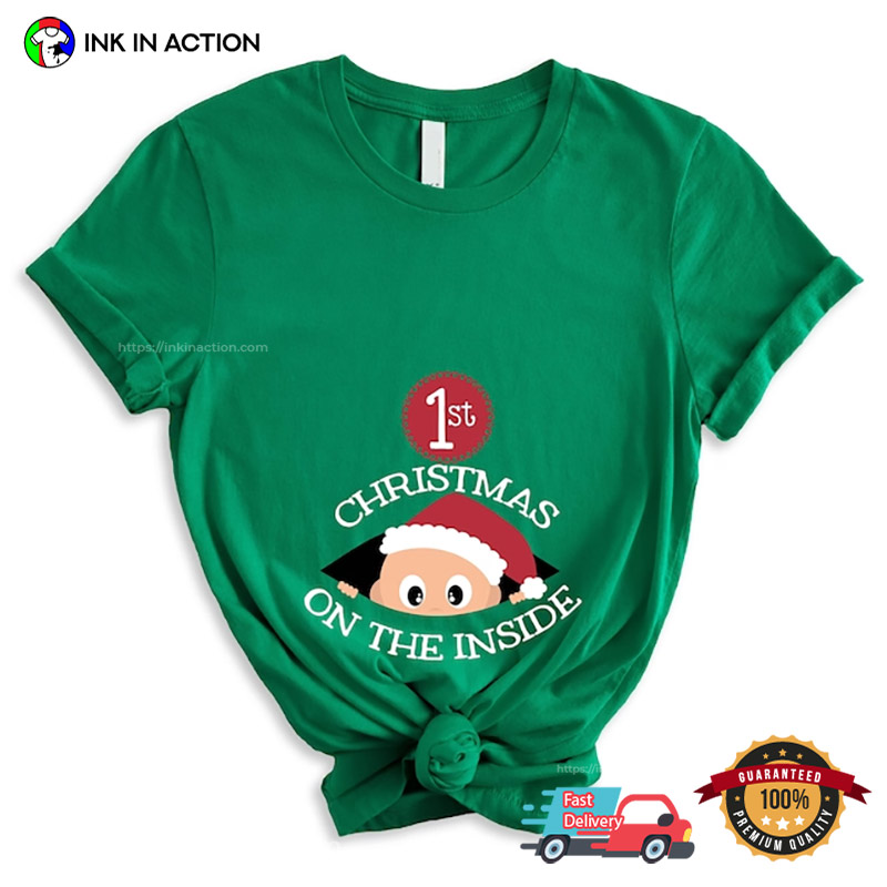 1st Christmas On The Inside Funny Pregnancy Announcement Tee
