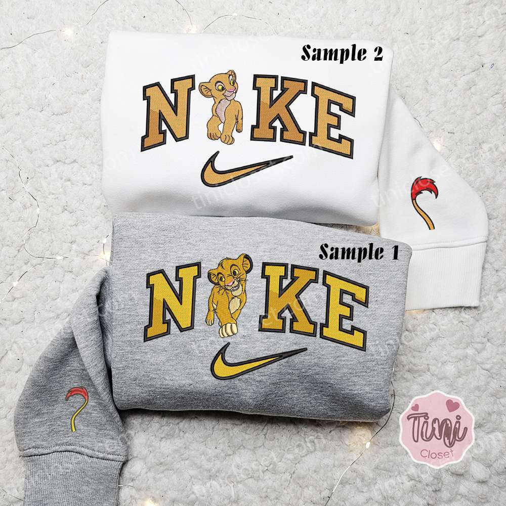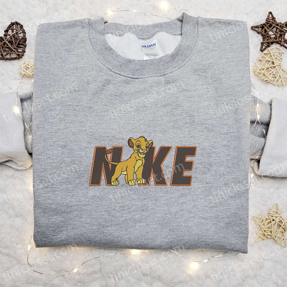 Simba X Nike Embroidered Shirt, Disney The Lion King Embroidered Hoodie, Nike Inspired Embroidered Sweatshirt