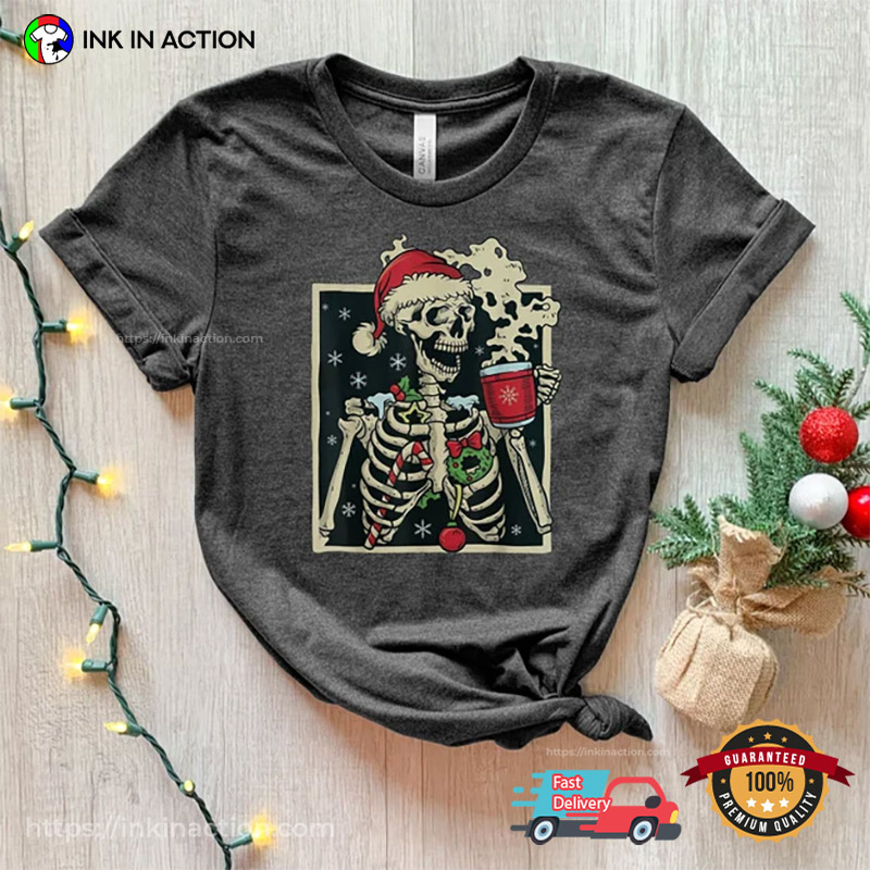 Skeleton Drink Hot Cocoa Vintage Christmas T-shirt