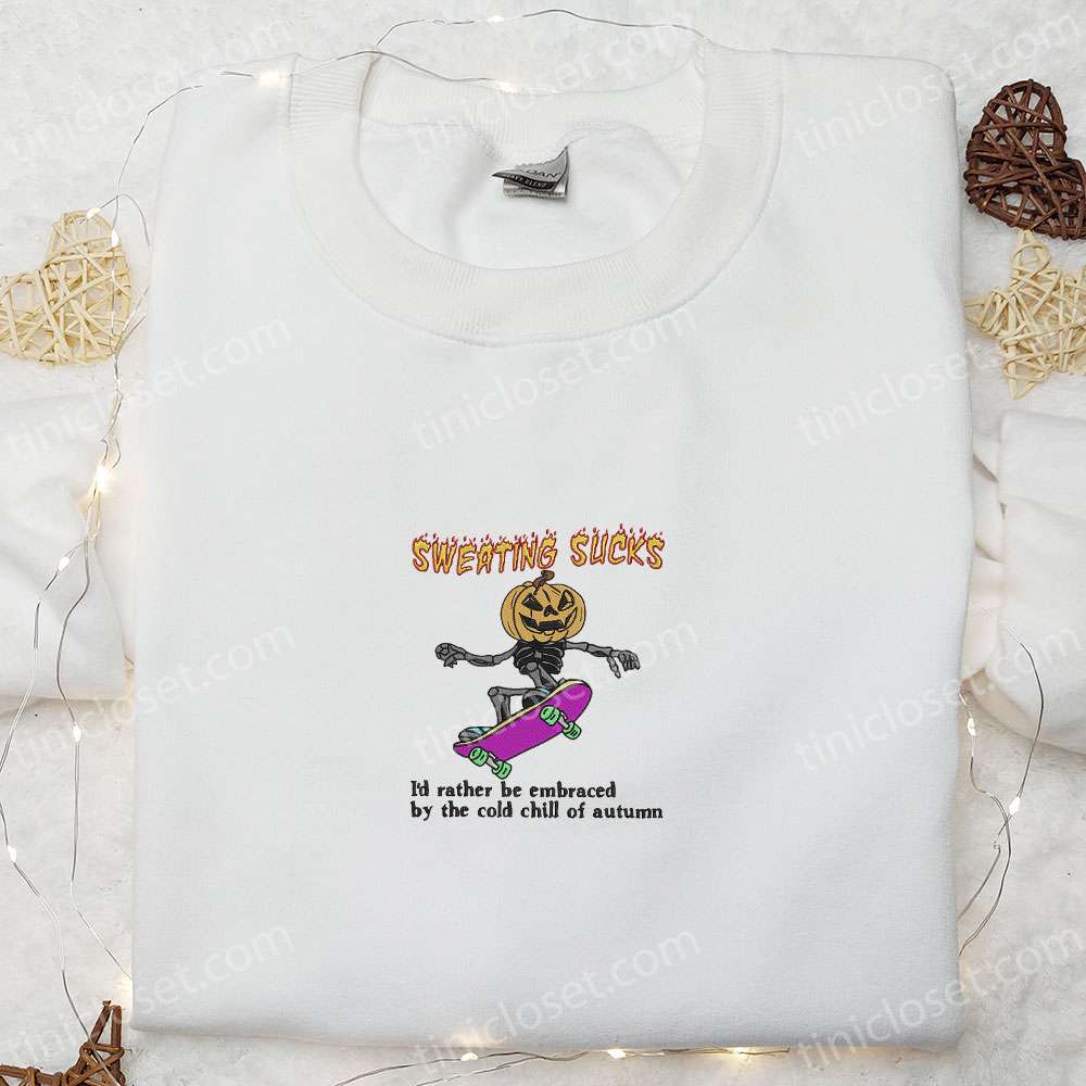 Skeleton Skateboarding Embroidered Sweatshirt, Halloween Embroidered Hoodie, Best Halloween Gift Ideas