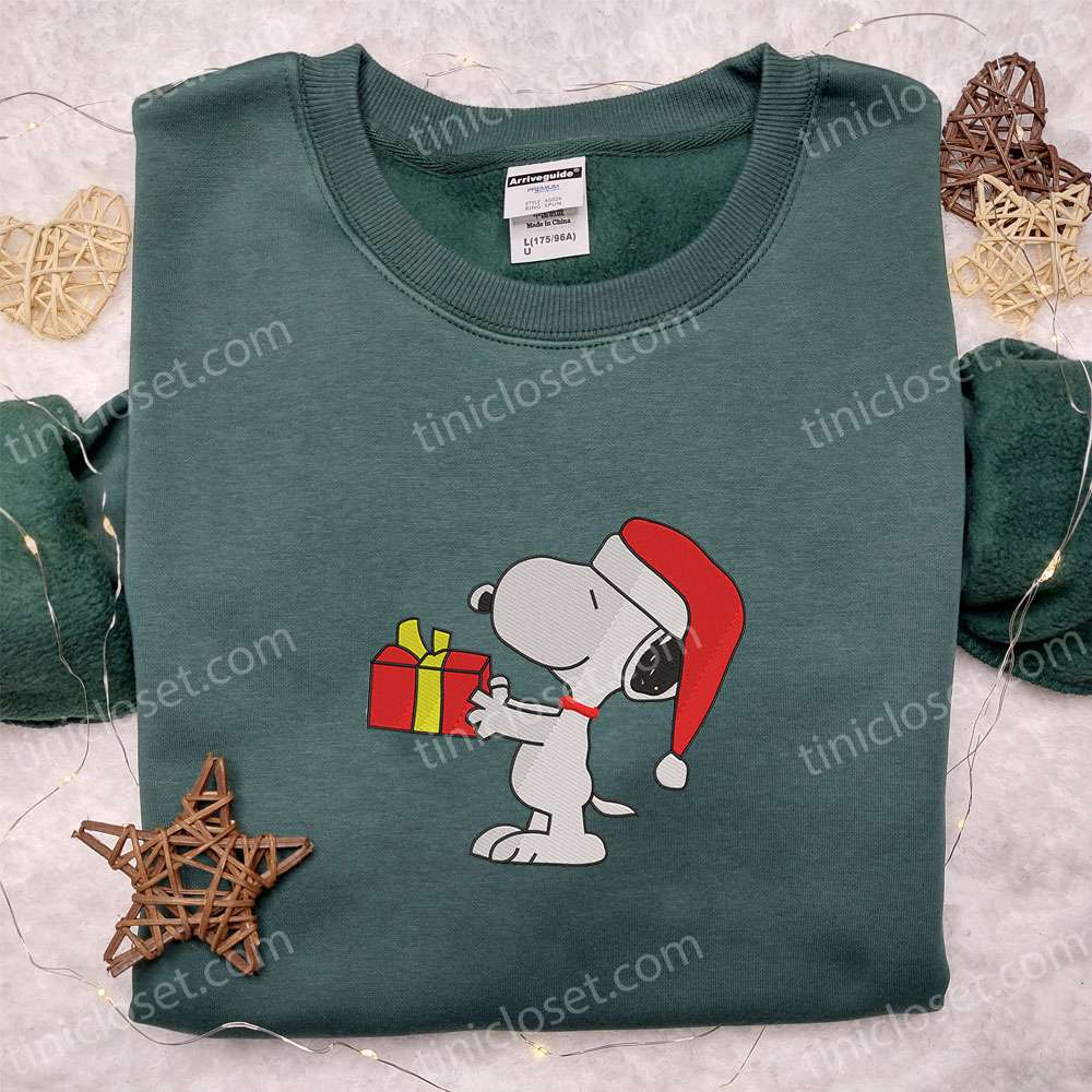 Snoopy Giving Christmas Gift Embroidered Shirt, The Peanuts Cartoon Embroidered Hoodie, Best Christmas Gifts For Family
