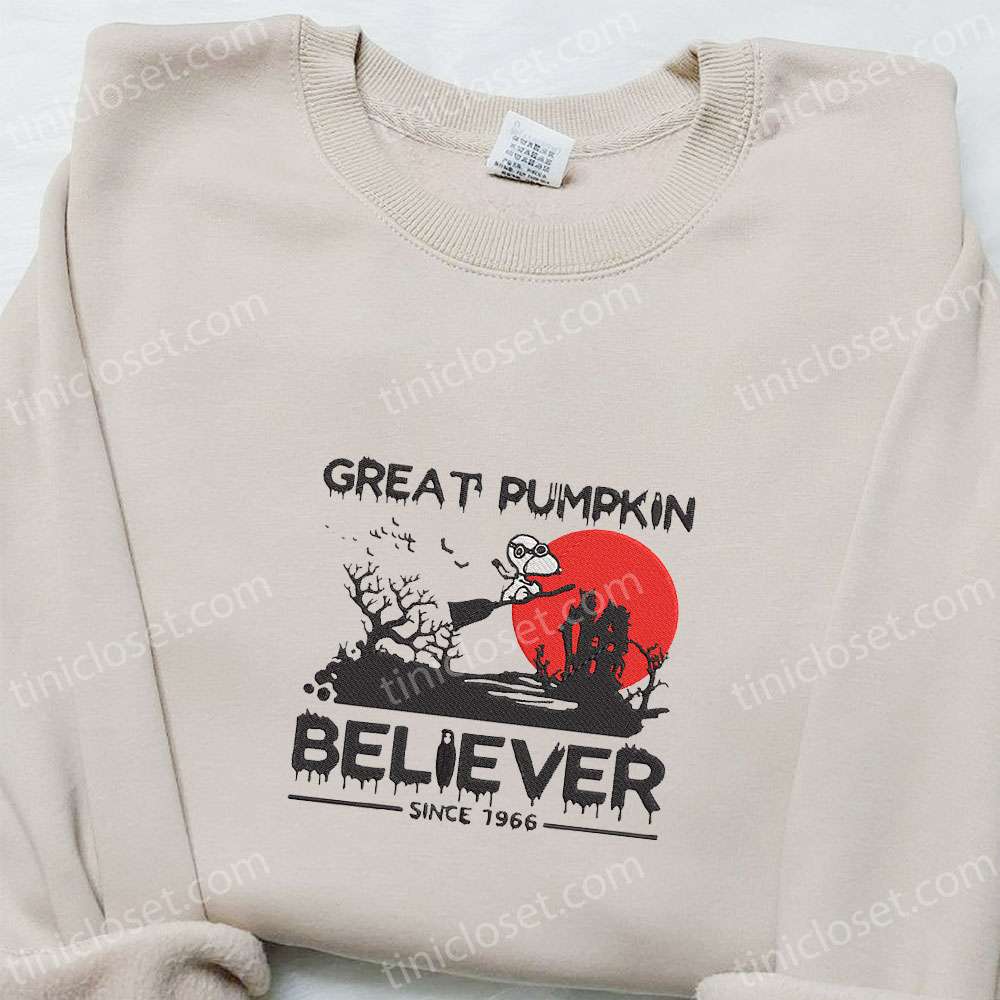Snoopy Great Pumpkin Believer Since 1966 Embroidered Sweatshirt, Disney Characters Embroidered Hoodie, Best Halloween Gift Ideas