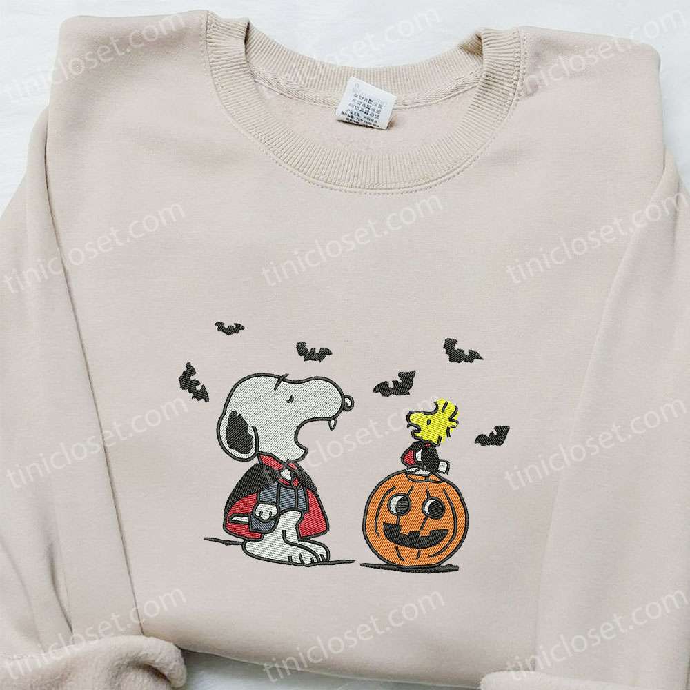 Snoopy Halloween Embroidered Sweatshirt, Peanuts Halloween Embroidered T-shirt, Best Halloween Gift Ideas For Family