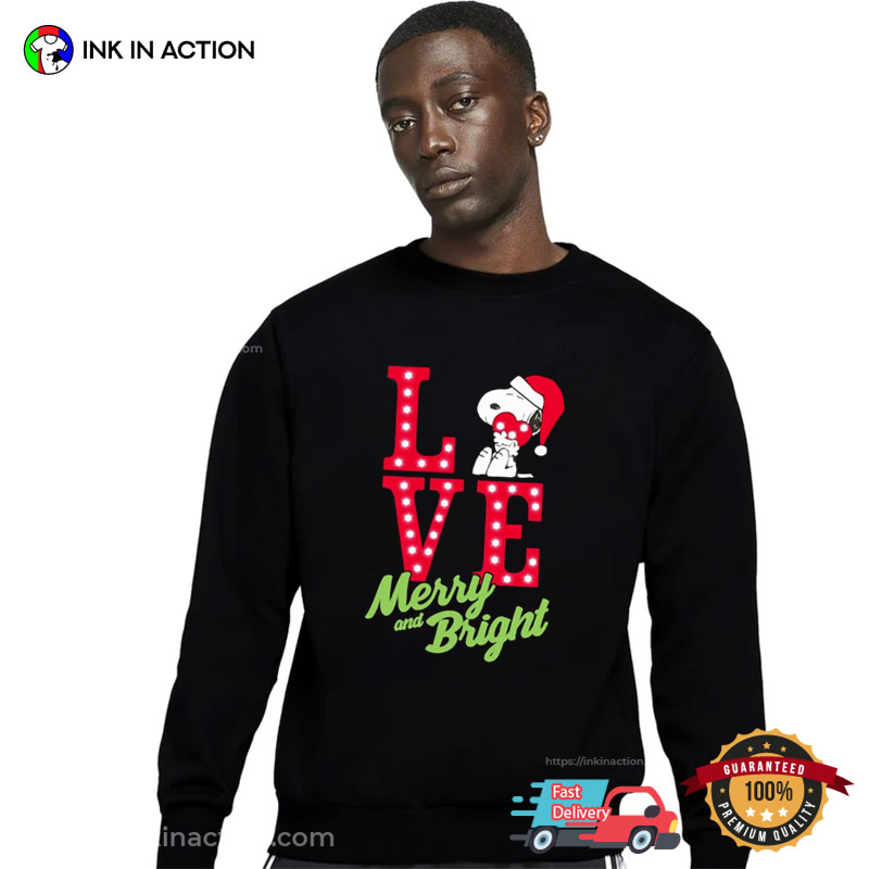 Snoopy Hat Santa Love Merry And Bright Shirt