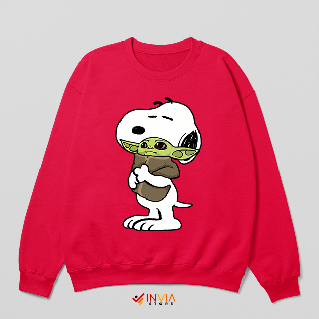 Snoopy Have Baby Yoda Toys Red Sweatshirt Funny Mandalorian