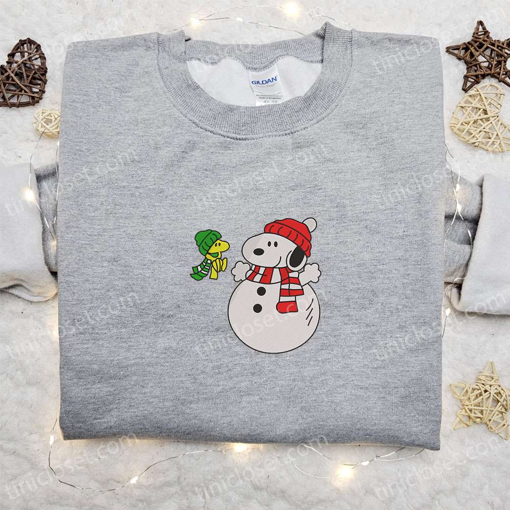 Snoopy Snowman And Woodstock Embroidered Shirt, The Peanuts Cartoon Embroidered Hoodie, Best Christmas Gifts For Family