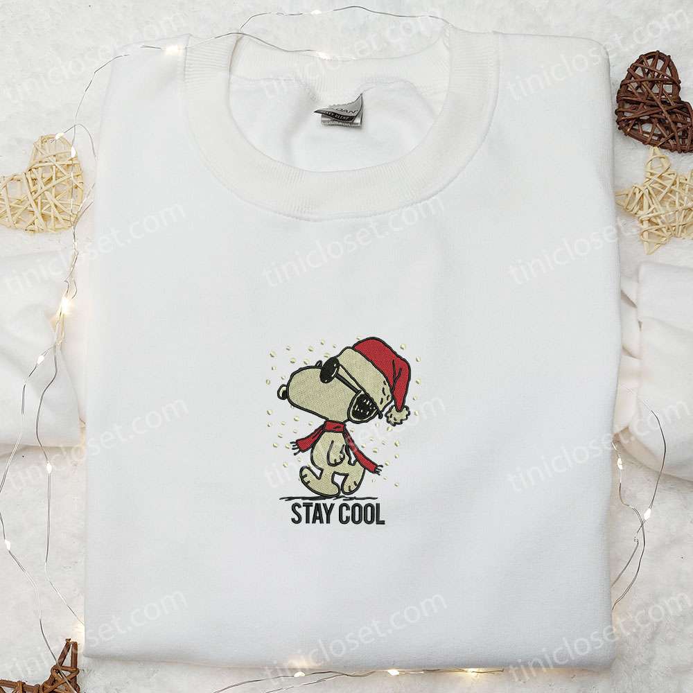 Snoopy Stay Cool Embroidered Shirt, Disney Characters Embroidered Hoodie, Christmas Embroidered Shirt