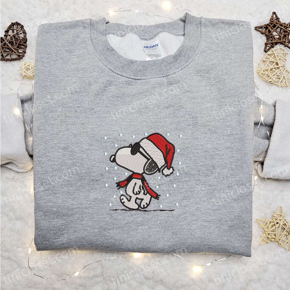 Snoopy Walking In Snow Xmas Embroidered Shirt, Cartoon Embroidered Hoodie, Christmas Embroidered Sweatshirt