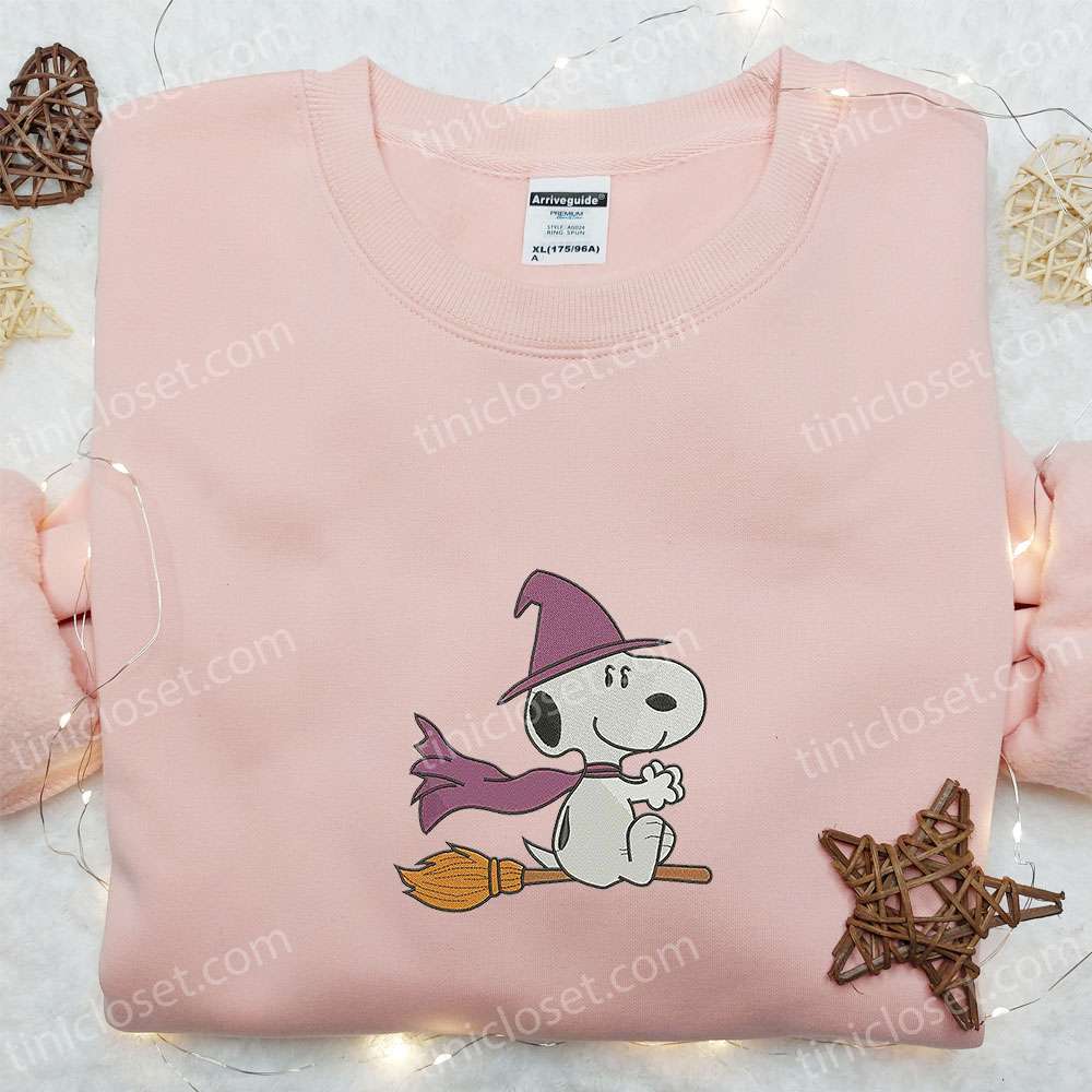 Snoopy Witch Fly Embroidered T-shirt, Peanuts Halloween Embroidered Hoodie, Best Halloween Gift Ideas