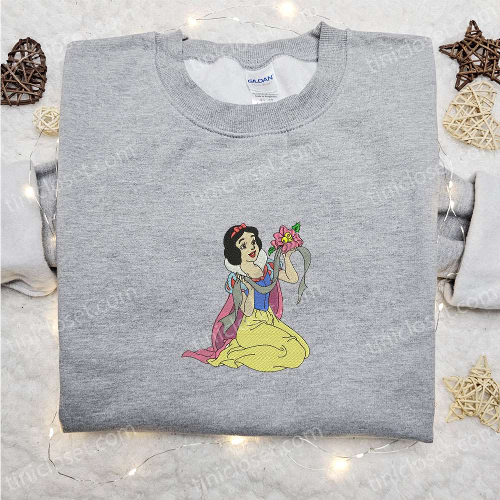 Snow White Christmas Embroidered T-shirt, Disney Christmas Embroidered T-shirt, Best Christmas Gift Ideas For Family