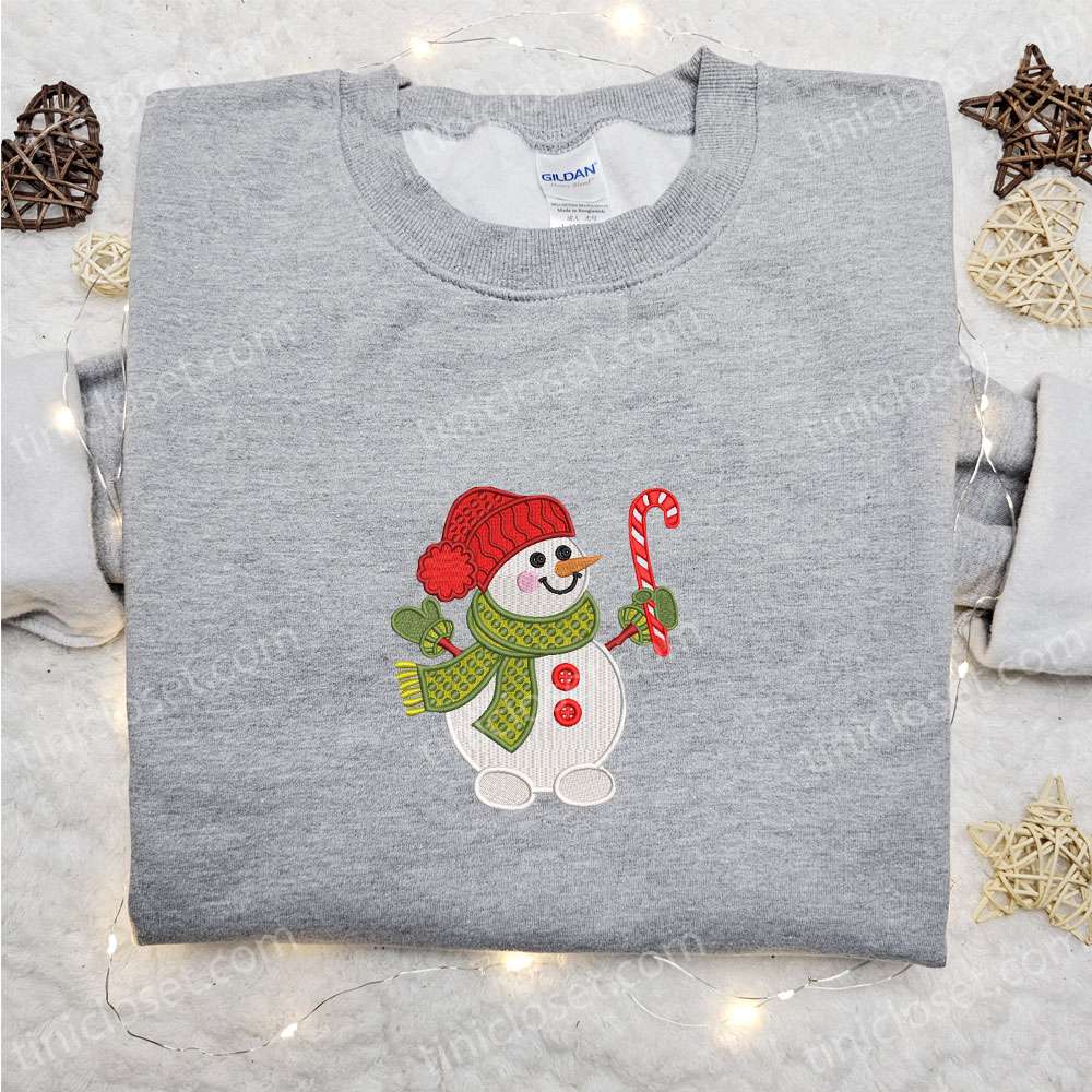 Snowman And Candy Cane Embroidered Shirt, Christmas Embroidered Hoodie, Best Gifts For Family