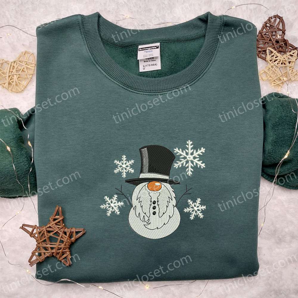 Snowman Gnome Embroidered Shirt, Christmas Embroidered Hoodie, Best Gifts For Family