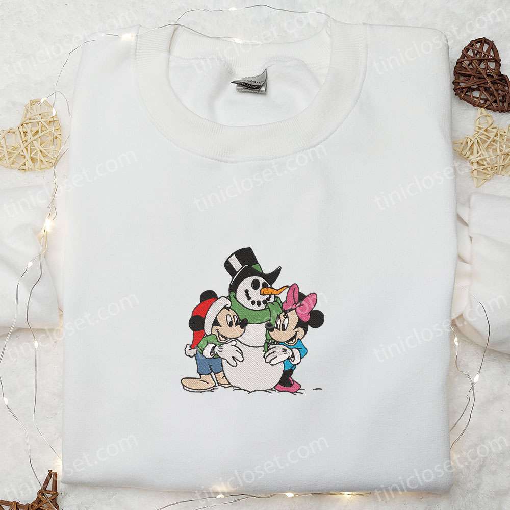 Snowman Mickey Minnie Embroidered Sweatshirt, Christmas Embroidered Hoodie, Disney Christmas Gifts For Family