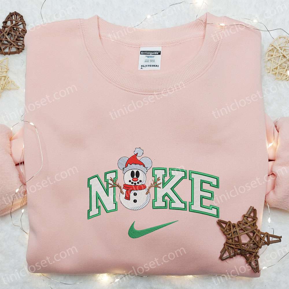Snowman Mickey Santa Hat X Nike Embroidered Sweatshirt, Walt Disney Embroidered Shirt, Best Christmas Gift Ideas