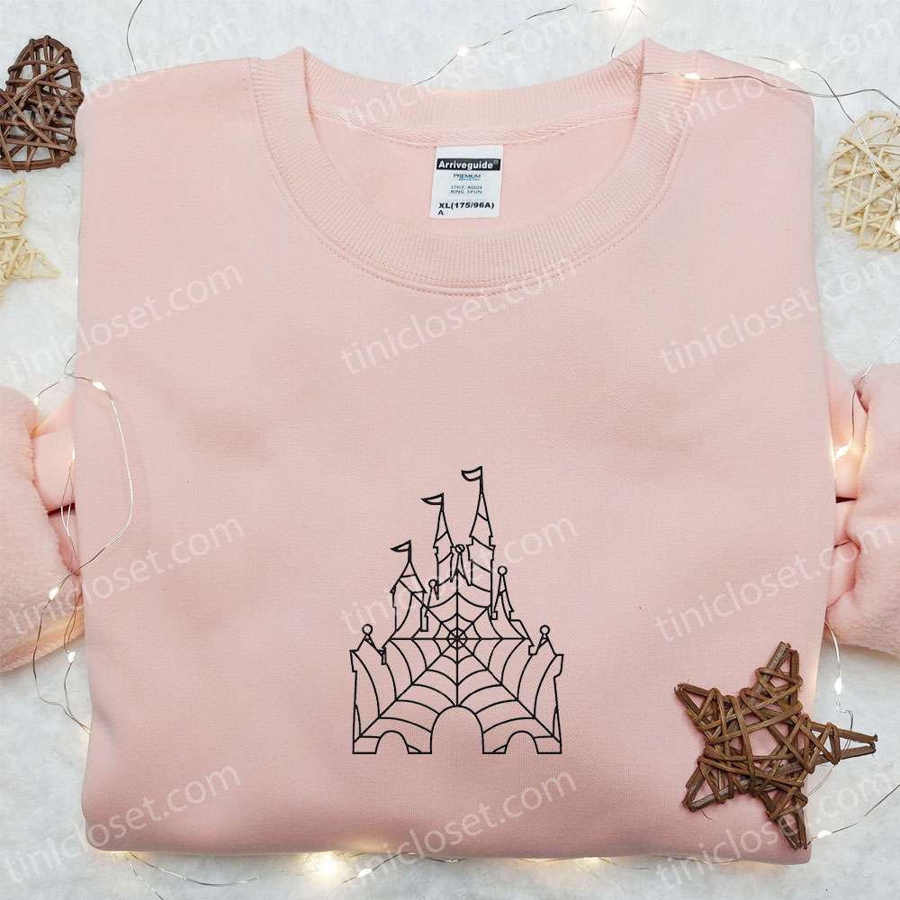 Spider Web Halloween Castle Embroidered Hoodie, Halloween Embroidered Sweatshirt, Best Halloween Gift Ideas