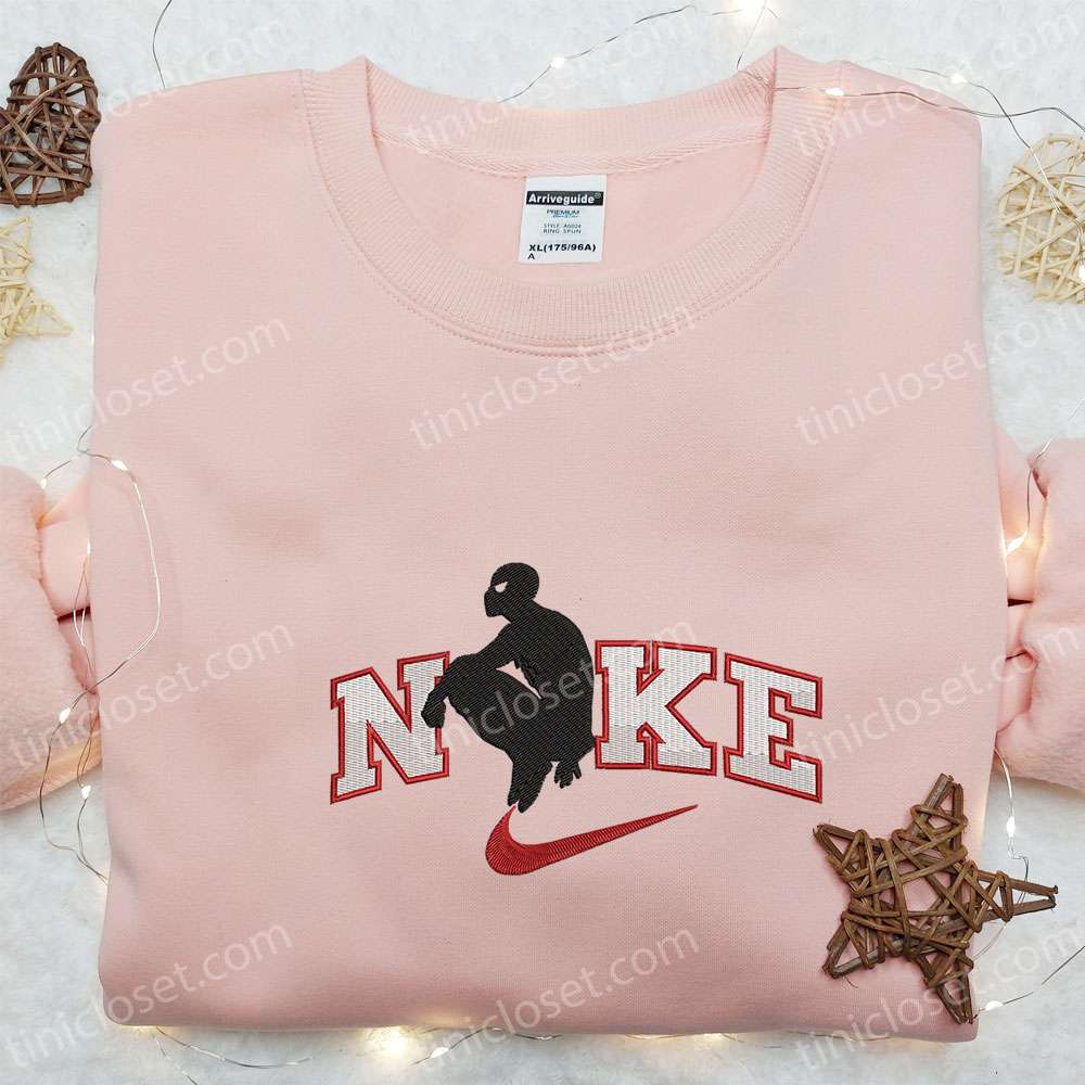 Spider-man Dark Suit X Nike Embroidered Shirt, Marvel Movies Embroidered Hoodie, Nike Inspired Embroidered Sweatshirt