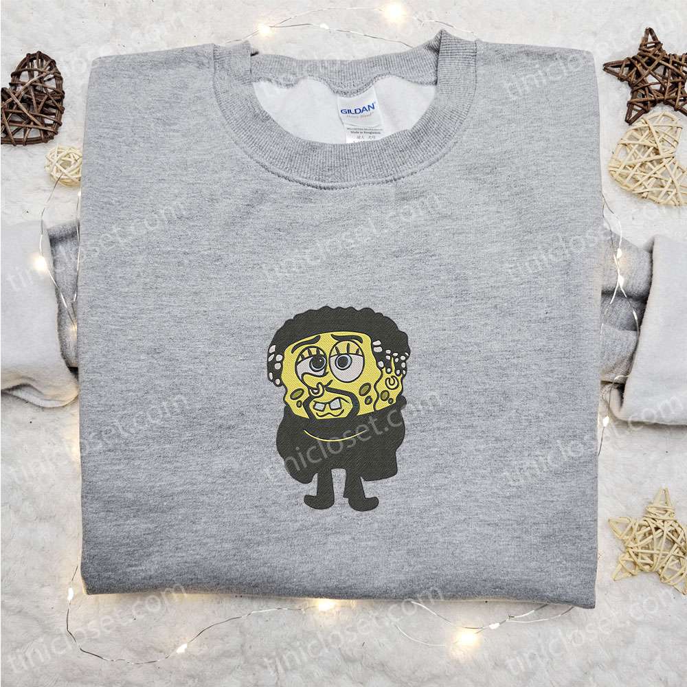 Spongebob Bad Bunny Embroidered Sweatshirt, Celebrity Embroidered Hoodie, Cartoon Embroidered Shirt