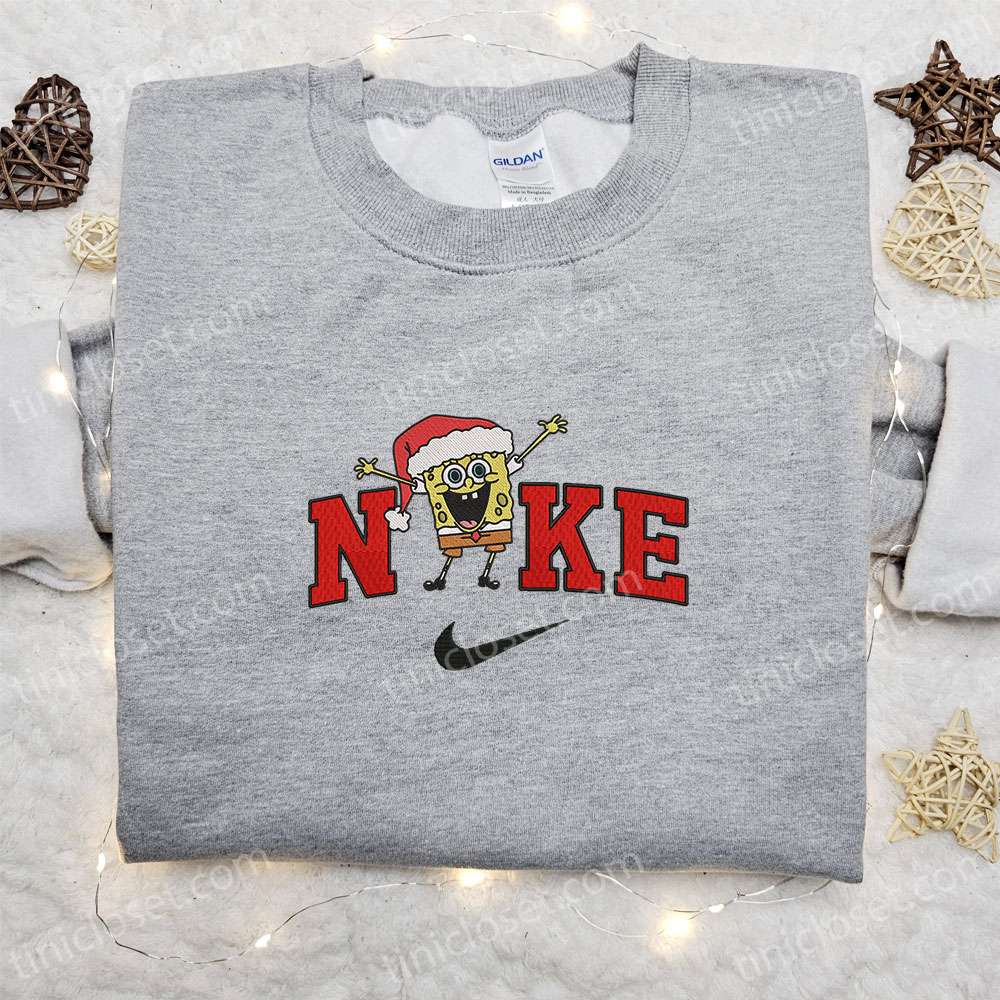 Spongebob Squarepants Cartoon X Nike Christmas Embroidered Sweatshirt, Christmas Embroidered Shirt, Best Christmas Gift Ideas